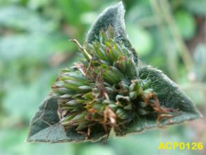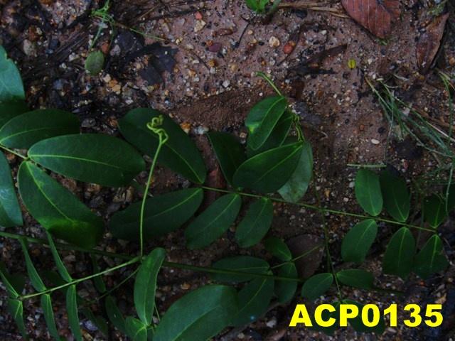 | Huraian | Morfologi: Syrub atau pemanjat, setinggi 3m. Cabang pendulus, glabrus pada nod. Anak daun 3-5, obovat atau oblanseolat, kedua-dua permukaan kesat. Infloresens pada aksil, jenis umbel . Pangkal daun kuneat, tepi daun krenat-serulat, apeks akut atau akuminat.Korola hijau kekuningan, stil bebas. Buah hitam apabila matang dan sub-globus.