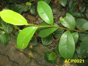 | Huraian | Morfologi: Syrub malar hijau dan membentuk kanopi membulat semasa muda. Daun kecil, hijau berkilat, eliptik, apeks akut hingga akuminat dan berselang seli. Bunga berwarna putih kekuningan. |