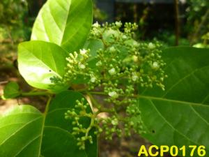 | Huraian | Morfologi: Syrub setinggi 1.5 m. Daun ringkas, selang seli dan tepi daun bergerigi. Apeks obtus hingga akut. Infloresens jenis umbel, pada terminal, bunga kecil dan berwarna merah jambu. |